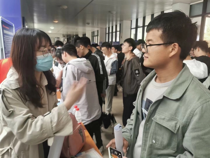 会场气氛热烈,本院大四学生与用人单位面对面,相互沟通,深入交流。学生向用人单位积极推介自己的专业特长和岗位期待,详细咨询用人单位提供的实习、就业岗位及要求和薪资待遇、生活安排、职业前景等;用人单位了解学生介绍单位背景、岗位需求、激励机制和晋升体系等相关信息。