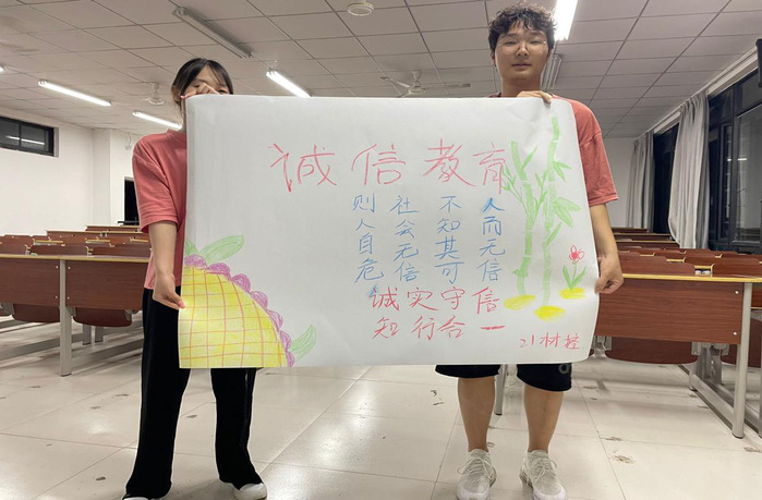 学院各班级在辅导员带领下,陆续召开“诚信立身,知行合一”主题班会,辅导员在班会中积极宣扬诚信立身的观念,提醒即将毕业的学生及时履行国家助学贷款合同,使学生真正理解信用财富和珍爱信用记录,享受幸福人生的意义。同时将诚信和钉钉打卡、出入门禁制度,学风建设相结合,建设诚信班级、诚信课堂、诚信宿舍、诚信个人等方方面面结合。通过开展主题教育班会,向同学们宣扬了诚信观念,有效增强了同学们的诚信意识,使诚信观念深入学生心中。让诚信这一传统美德成为学生日常生活行为准则。