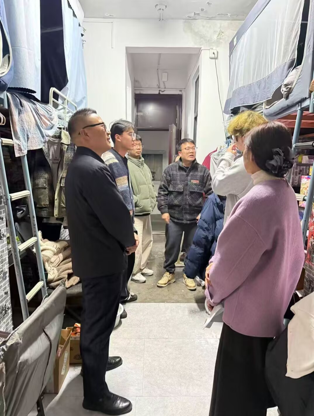 当晚,该院一行深入各学生宿舍楼栋,查看宿舍安全卫生情况,细致排查违规电器、用电安全、消防隐患等问题,同时与学生面对面交流,倾听大家在学习、生活中的困难与诉求,叮嘱学生养成良好作息习惯,营造团结互助、积极向上的宿舍氛围,切实将学院的关怀与温暖送到学生身边,为学生成长成才筑牢安全、温馨的社区环境。