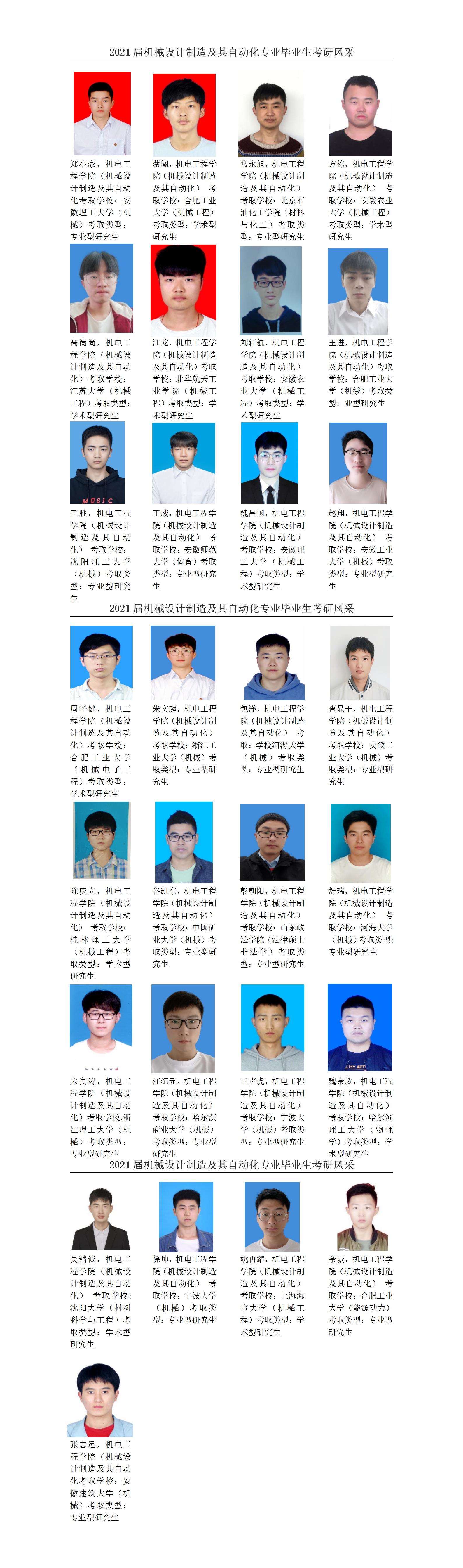 2021届机械设计制造及其自动化专业毕业生考研风采