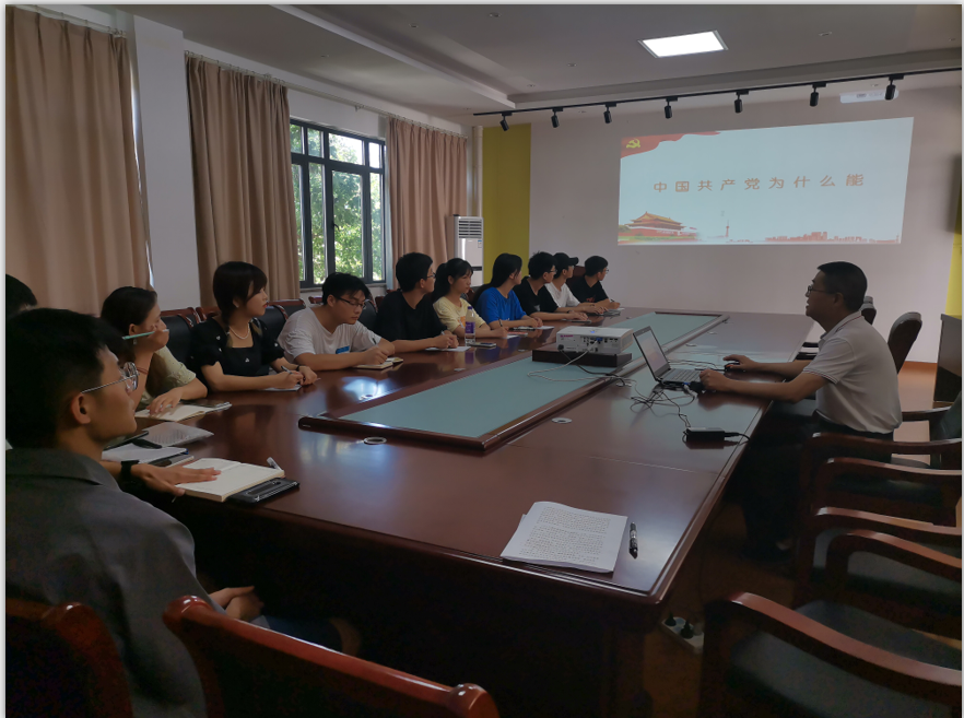 7月6日上午,在线买世界杯平台分党委书记蔡康松在文津楼4205为在线买世界杯平台第三党支部党员讲授党史学习教育专题党课。
