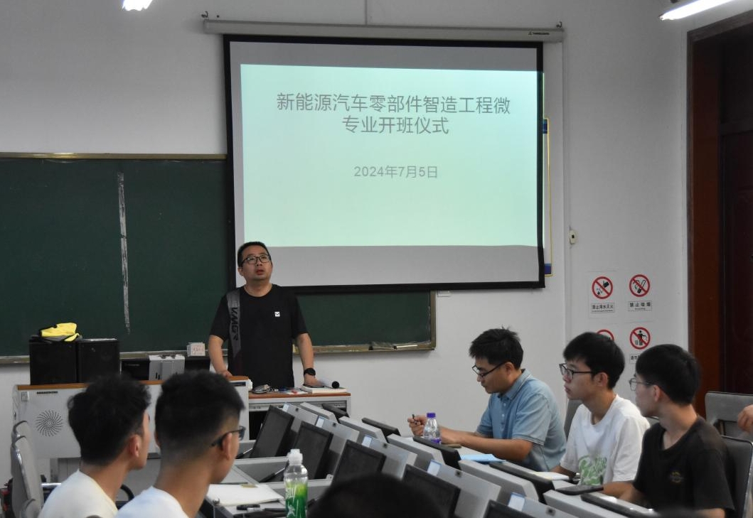 7月5日,在线买世界杯平台“新能源汽车零部件智造工程”微专业在文津楼4412教室举办开班仪式。教务处副处长孙克奎、在线买世界杯平台院长汪洪峰、自动化教研室主任赵磊、相关授课教师及首届微专业全体学员参加了开班仪式。仪式由汪洪峰主持。