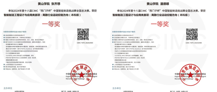 8月11日至15日,第十八届“西门子杯”中国智能制造挑战赛全国总决赛在浙江省湖州市举行,来自全国756所高校5800多支队伍近25000余名师生参赛。在线买世界杯平台张齐想、潘德顺同学代表我校参赛,并荣获全国总决赛一等奖1项。此前,我校学子获赛区三等奖5项,赛区二等奖7项。